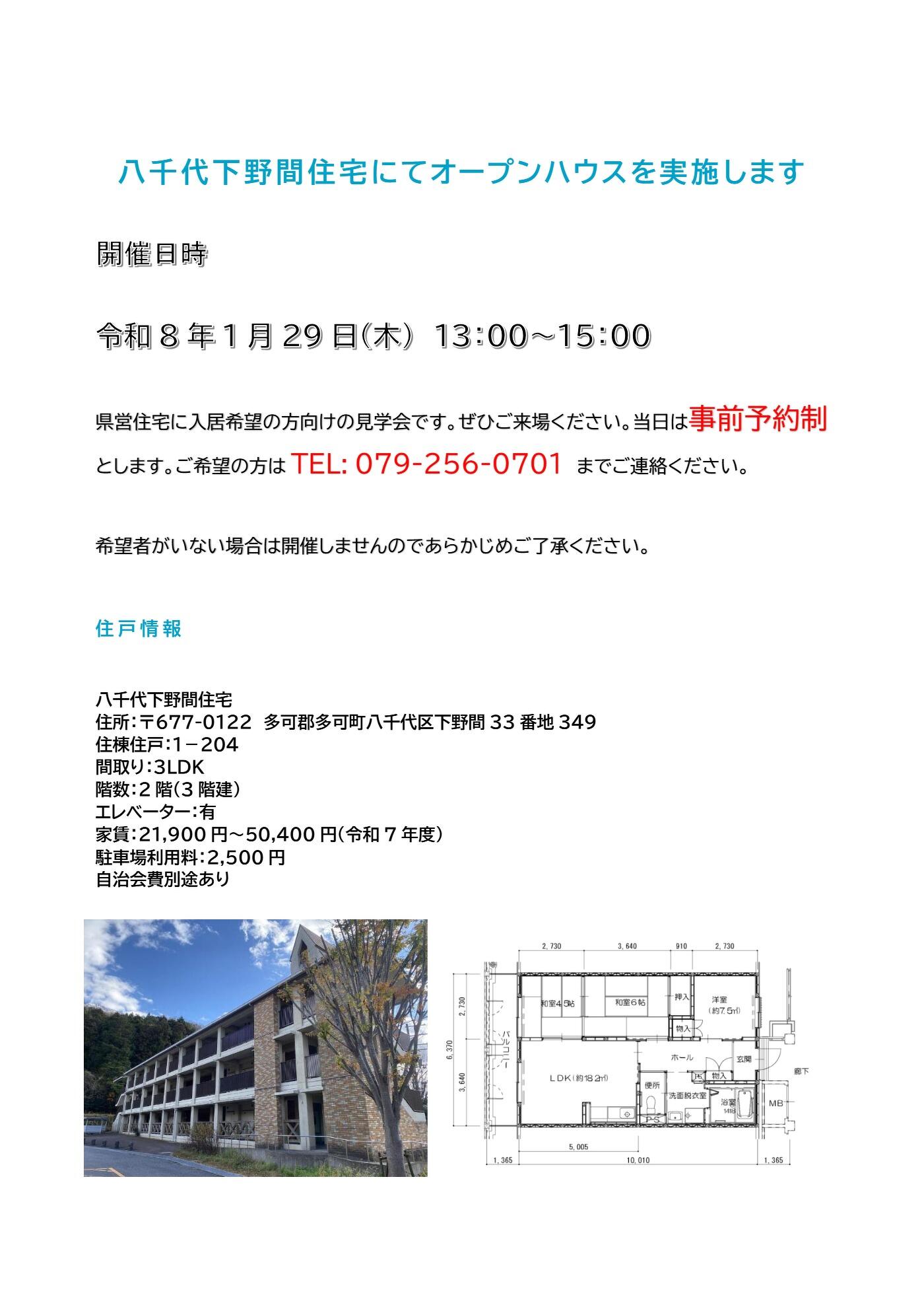 1/29(木) オープンハウス開催します!(八千代下野間住宅1-204号室)